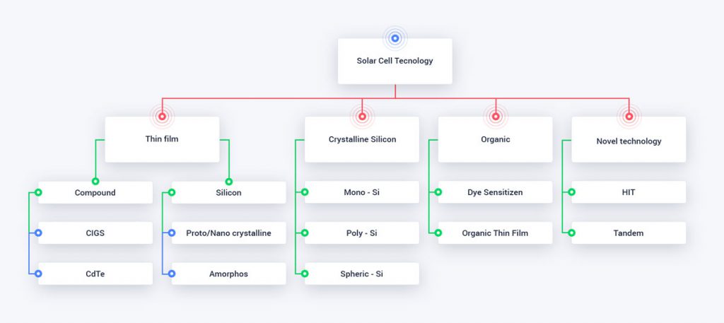 - First generation solar cells are mainly based on silicon technology with moderate performance of 15-20% efficiency and is most commonly used nowadays.